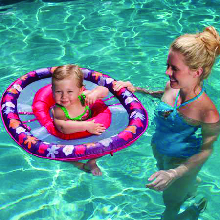 Comfort and convenience for baby. It has a mesh playspace for toys and splashing. Dual inflation chambers & low seat enhance security. Ages: 9-24 months.