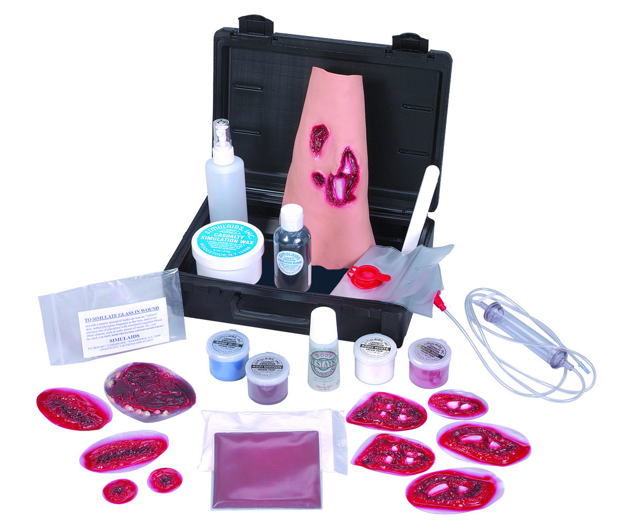 The most economical way to get started in simulating injuries. Reusable wounds and refillable accessories let you practice bandaging and splinting techniques repeatedly.